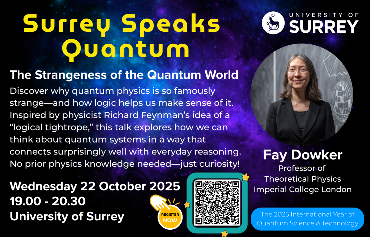 Join us for Surrey Speaks: Quantum – The Strangeness of the Quantum World, a captivating lecture series exploring the famously puzzling nature of quantum physics. In celebration of the 2025 International Year of Quantum Science & Technology.