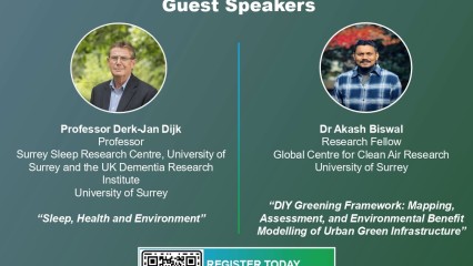 This UGPN webinar was held on Wednesday, 29th October 2025 with Professor Derk-Jan Dijk, Surrey Sleep Research Centre, University of Surrey and the UK Dementia Research Institute presenting 'Sleep, Health and Environment ' and Akash Biswal, Global Centre for Clean Air Research, University of Surrey introducing 'Grey to Green: DIY Greening Framework: Mapping, Assessment, and Environmental Benefit Modelling of Urban Green Infrastructure '