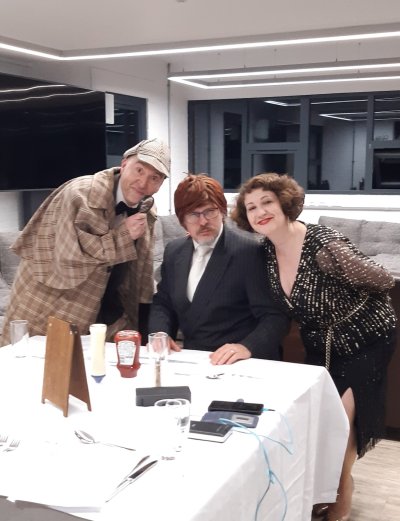 Students were invited to a dinner theatre event to help Sherlock Holmes solve the mystery of ‘Prof Bugel’s’ death over a three course meal. The evening was truly superb and full of excitement and turns in the plot. Students were greeted by the characters at the Wates bar for pre-dinner drinks, where cluepacks were distributed! The comic plot unfolded around each course served. During desert the students had a chance to figure out who dunnit!! The students had a fantastic time and enjoyed working as a team in their tables to uncover the murderer. This was all about community building and it was a brilliant way to get to know each other in the beginning of their studies.