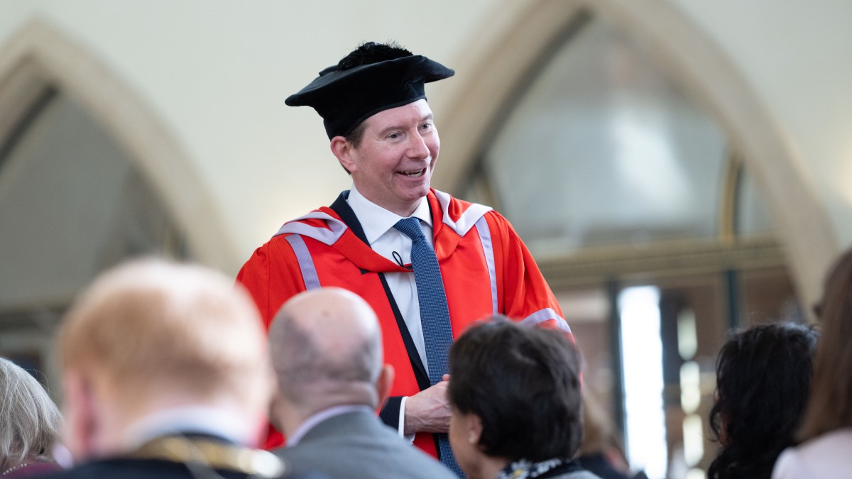 In a ceremony that fused a message about the dual research and teaching purpose of the University, the urgency of a rapidly changing world, and age-old academic pageantry, Professor Stephen Jarvis was formally installed as the University of Surrey's sixth President and Vice-Chancellor at Guildford Cathedral on 11 February